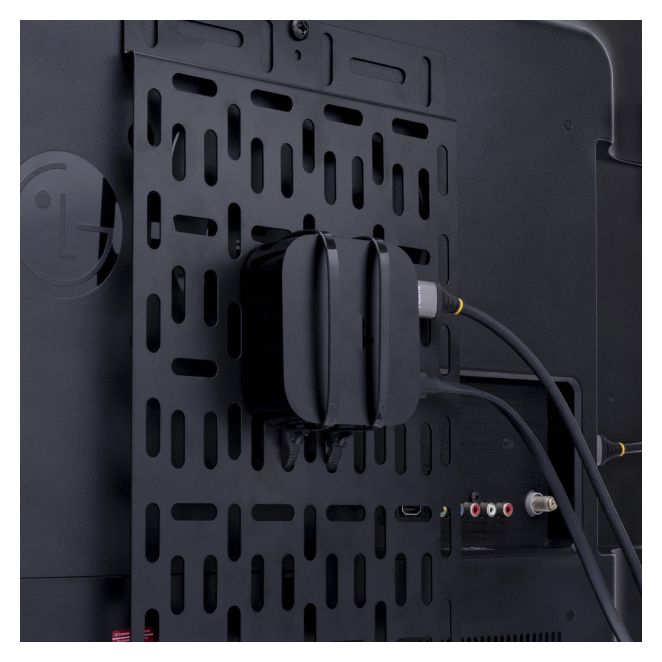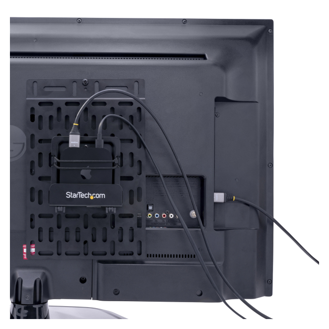 El Soporte Universal Ajustable StarTech.com proporciona múltiples beneficios para mejorar la organización de su espacio. Su diseño ajustable permite montar diversos dispositivos detrás del TV, manteniendo el área ordenada y sin cables visibles.