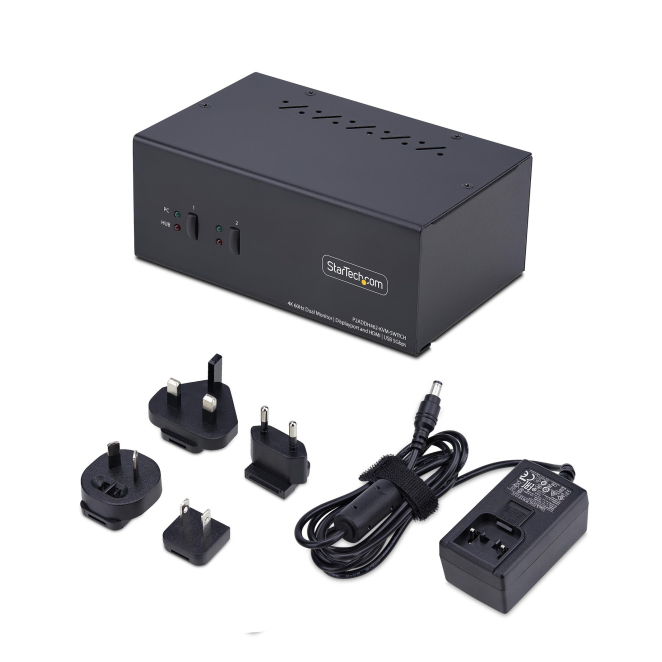 StarTech.com Switch KVM de 2 Puertos DisplayPort HDMI, conmutador KVM de dos monitores y hub USB de 2 puertos 5Gbps, SKU P2ADDH462-KVM-SWITCH