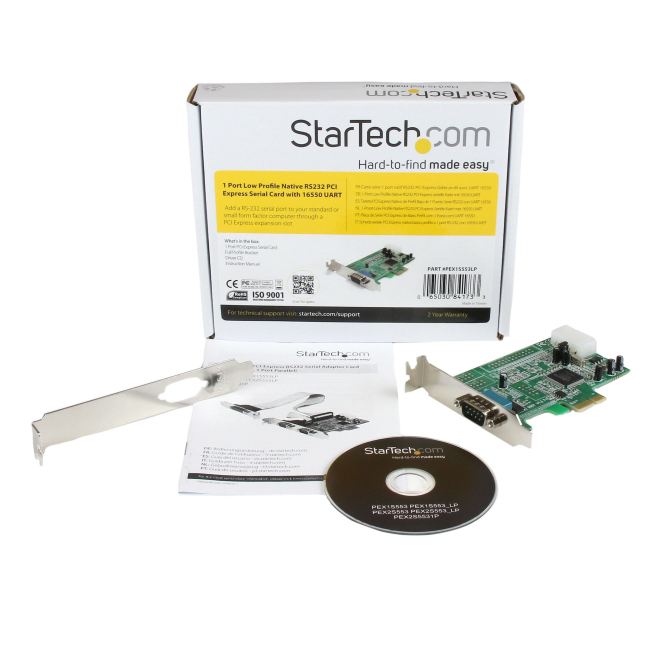 StarTech.com Tarjeta PCI Express Adaptadora Serie RS232 DB9 de 1 Puerto UART16550, PEX1S553LP, tarjeta de expansión de perfil bajo para Windows y Linux Este producto se puede comprar bajo demanda. Financiado desde: 2,63 € /mes Solicita información en caso de necesitar envío urgente. Métodos de pago: StarTech.com tarjeta PCI Express adaptadora serie RS232 DB9 de 1 puerto UART16550 La StarTech.com tarjeta PCI Express adaptadora serie RS232 DB9 de 1 puerto UART16550 es una solución de expansión ideal para quienes necesitan añadir un puerto serial RS-232 a su ordenador. Esta tarjeta PCIe de alta calidad es compatible con una amplia gama de sistemas operativos, como Windows y Linux. El producto está basado en un diseño de chip único nativo que reduce la carga del CPU en un 48% en comparación con las tarjetas de puerto serie convencionales, aumentando la eficiencia y el rendimiento.
