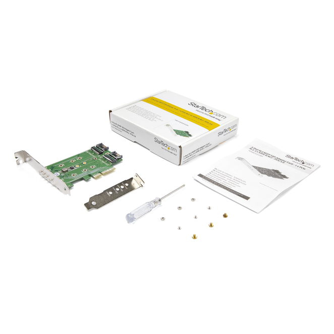 La StarTech.com Tarjeta Adaptadora de 3 Puertos M.2 NGFF para SSD es compatible con unidades SSD M.2 PCIe NVMe y SSD M.2 SATA III.