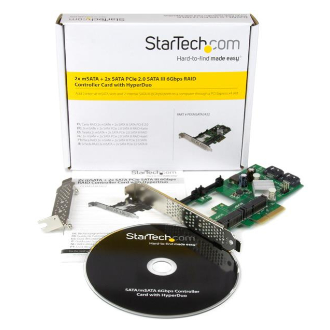 StarTech.com Tarjeta Controladora SATA III RAID PCI Express 2.0 con 2 ranuras mSATA, ideal para emparejamiento HyperDuo SSD. SKU: PEXMSATA3422