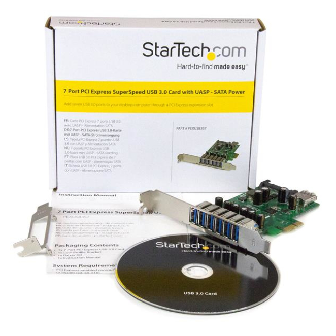 Adaptador de tarjeta PCI Express StarTech.com con 7 puertos USB 3.0, perfil bajo o completo, SKU: PEXUSB3S7
