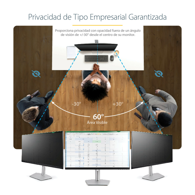 - Protección de privacidad: Limita el ángulo de visión a 30 grados, asegurando que solo usted tenga acceso a la información en su pantalla.