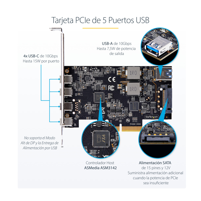 Aquí tienes algunas de las preguntas más frecuentes sobre la StarTech.com Tarjeta PCIe de 5 Puertos USB de 10Gbps