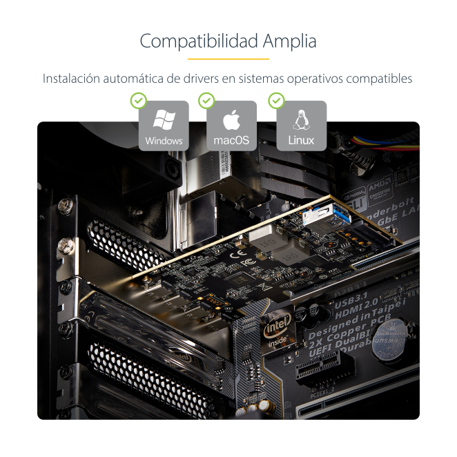 La tarjeta se autoinstala en la mayoría de los sistemas operativos populares, lo que facilita su uso inmediato sin complicaciones.