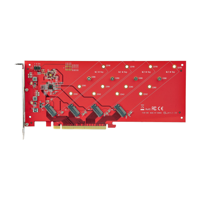 Puedes instalar hasta cuatro SSD M.2 en una sola ranura PCIe x16.