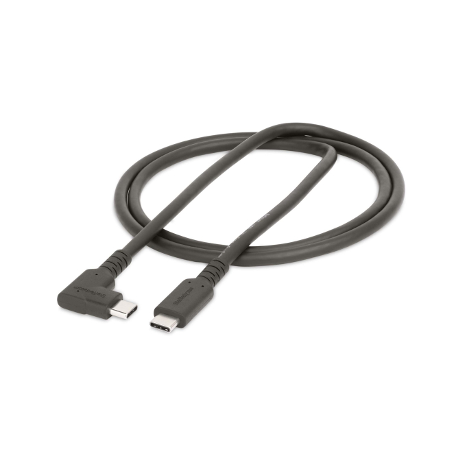 StarTech.com Cable USB-C de 1 metro con conexión acodada, soporta USB 10 Gbps y entrega de alimentación de 100W (5A). Compatible con modo alternativo de DP 8K 60 Hz y 4K 144 Hz. SKU: RUSB31CC1MBR