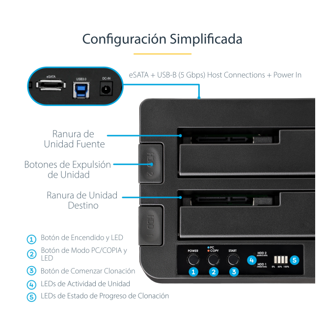 StarTech.com duplicador USB 3.0 (5 Gbps) o eSATA de discos duros de 2 bahías