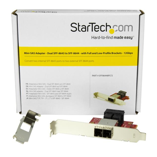 StarTech.com Adaptador Mini-SAS – Adaptador Doble SFF8643 a SFF8644 – con Brackets de Perfil Completo y Bajo – 12Gbps