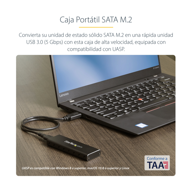 StarTech.com Caja USB 3.0 (5Gbps) a SSD M.2 de Aluminio con UASP – Negro – SKU: SM2NGFFMBU33