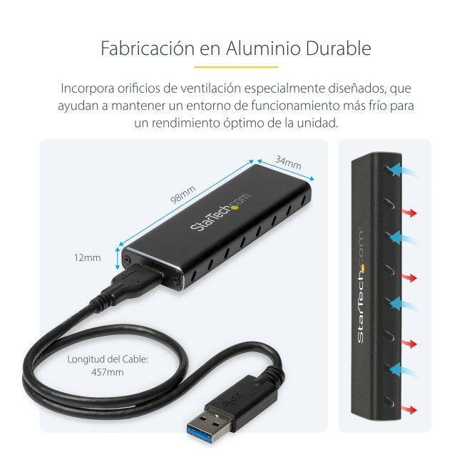 Elegir la StarTech.com Caja USB 3.0 a SSD M.2 de Aluminio con UASP – Negro es una decisión inteligente por múltiples razones: