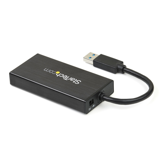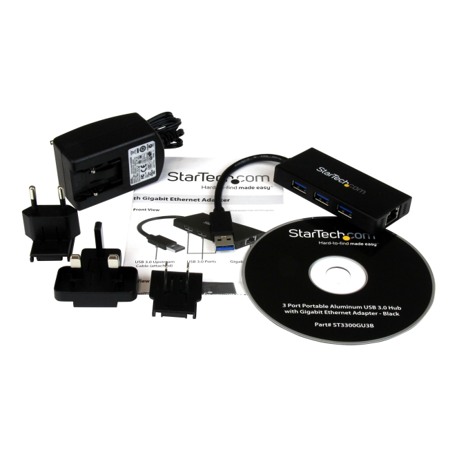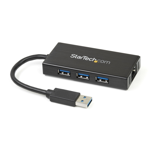Imagen del StarTech.com Hub USB 3.0 de Aluminio con Cable – 5Gbps – Concentrador de 3 Puertos USB con Adaptador de Red Ethernet Gigabit, SKU ST3300GU3B.