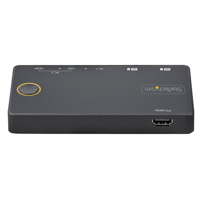 Encuentre respuestas a las preguntas más comunes sobre el StarTech.com Switch Conmutador de 2 Puertos Híbrido USB-A HDMI y USB-C: Sí, el StarTech.com Switch soporta monitores 4K Ultra HD a 60Hz. El paquete incluye todos los cables necesarios para conectar sus ordenadores al switch. No, el StarTech.com Switch está alimentado por el bus, eliminando la necesidad de un adaptador de corriente adicional. El cambio entre dispositivos se realiza mediante un botón único en el switch. Sí, el StarTech.com Switch es compatible con macOS, Windows, Linux, iOS y Android. Número de computadoras controladas 2 Tipo de puerto de teclado USB Tipo de puerto de ratón USB Tipo de puerto de vídeo HDMI Máxima resolución 3840 x 2160 Pixeles Color del producto Negro Indicadores LED Si Pantalla incorporada No Intervalo de temperatura operativa 5-55 °C Intervalo de temperatura de almacenaje -20-50 °C Intervalo de humedad relativa para funcionamiento 20-80 % Ancho 138 mm Peso 200 g Profundidad 70 mm Altura 15 mm Ancho del paquete 120 mm Profundidad del paquete 172 mm Altura del paquete 85 mm Peso del paquete 250 g ¿Tienes dudas sobre qué producto elegir?