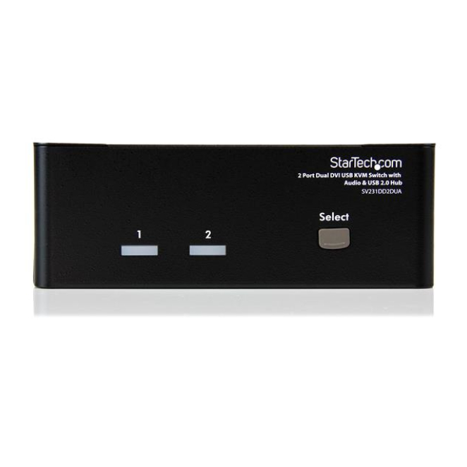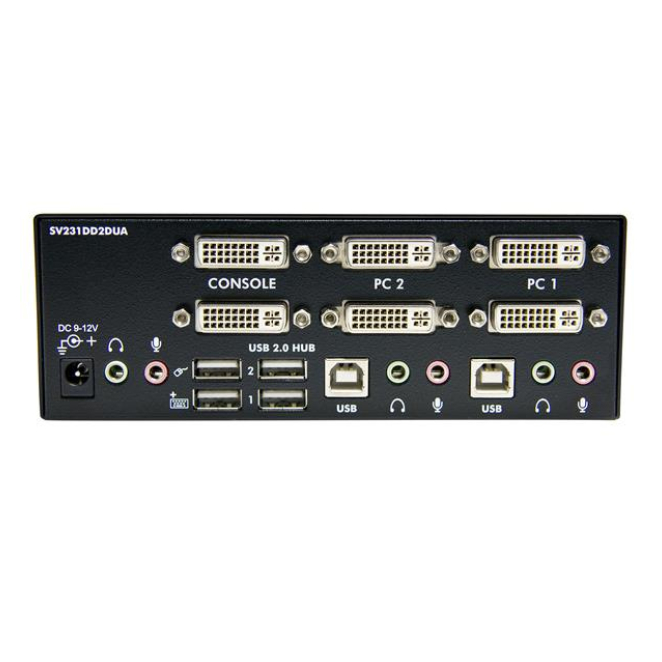 Conmutador KVM StarTech.com modelo SV231DD2DUA con 2 Puertos, soporte para Doble Monitor DVI, Audio y 4 Puertos USB, resolución 1920×1200