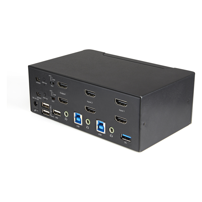 StarTech.com Switch Conmutador KVM de 2 Puertos HDMI 2.0 4K para 2 Monitores – Vídeo de 4K y 60Hz Ultra HD – HDR – Hub Ladrón USB 3.0 de 2 Puertos y 4 Puertos USB 2.0 HID – Audio – HotKey – TAA