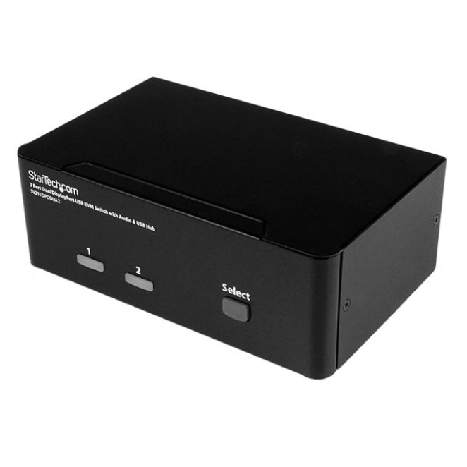 El Switch Conmutador KVM de 2 Puertos DisplayPort – 4K 60Hz de StarTech.com ofrece una serie de ventajas destacables. En primer lugar, su capacidad para soportar resoluciones 4K Ultra HD a 60Hz asegura la máxima calidad de imagen. Permite el uso compartido de periféricos USB gracias a su concentrador de 2 puertos USB, mejorando la eficiencia al no necesitar equipos adicionales. Adicionalmente, su soporte de doble monitor permite una experiencia de visualización amplia y práctica, ideal para el trabajo multitarea. La compatibilidad con audio independiente le permite manejar sonido análogo de forma simple, lo que mejora la experiencia multimedia.