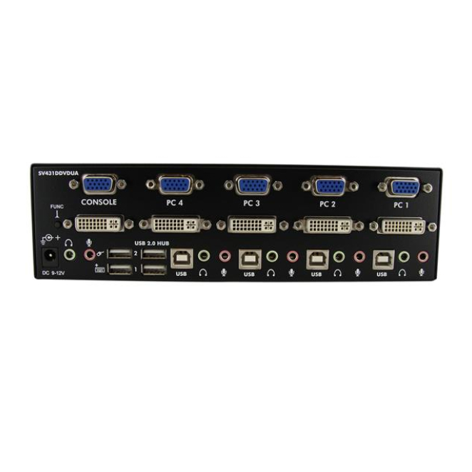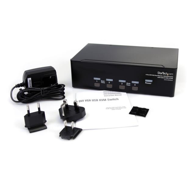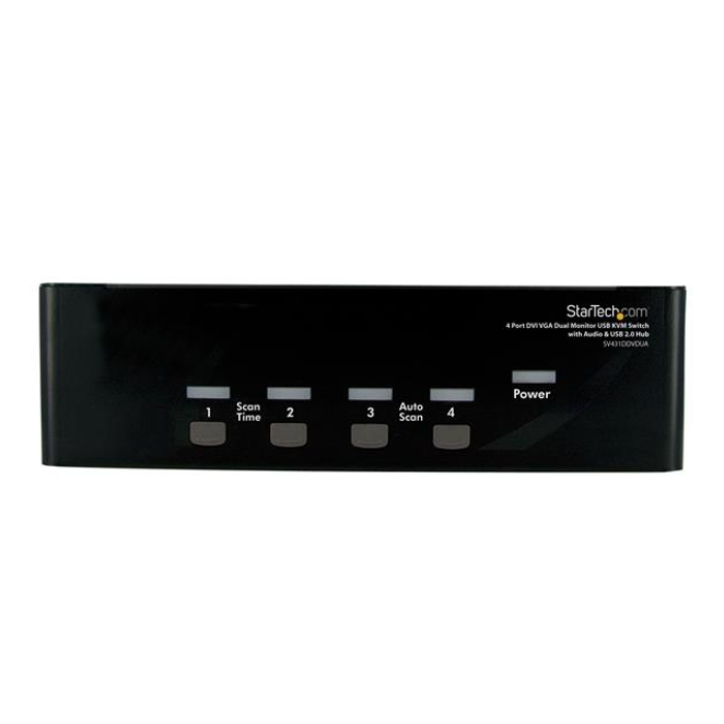 StarTech.com Conmutador KVM Switch para controlar 4 ordenadores con 2 monitores dobles DVI VGA, audio y puertos USB, modelo SV431DDVDUA