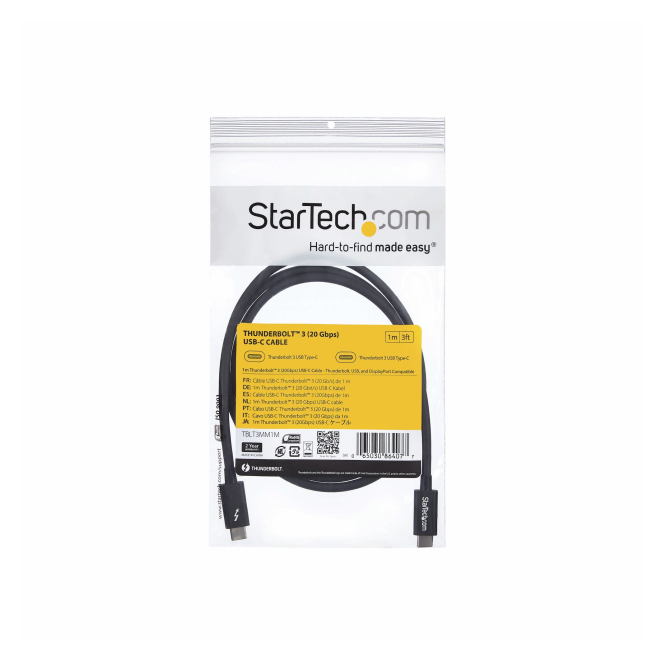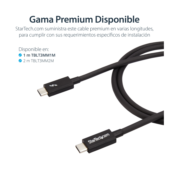 Cable Thunderbolt 3 StarTech de 1 metro, velocidad de 20Gbps, Power Delivery de 100W, SKU TBLT3MM1M, compatible con USB4, Modo Alt DP y Thunderbolt 4