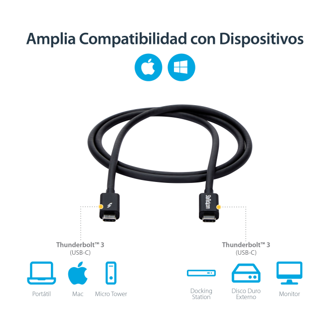El StarTech.com Cable Thunderbolt 3 Pasivo de 1m es una compra inteligente por diversas razones:
