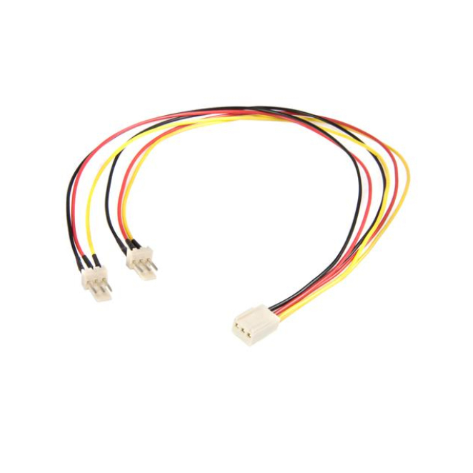 Conecta dos ventiladores a un solo conector, ideal para sistemas con limitaciones de espacio.