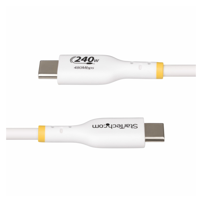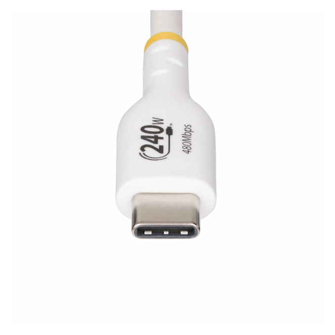 StarTech cable de carga para portátil USB-C de 4 metros, USB 2.0 tipo C, color blanco, certificación USB-IF, PD 240W, recubrimiento de TPE, SKU USB2EPR4MW