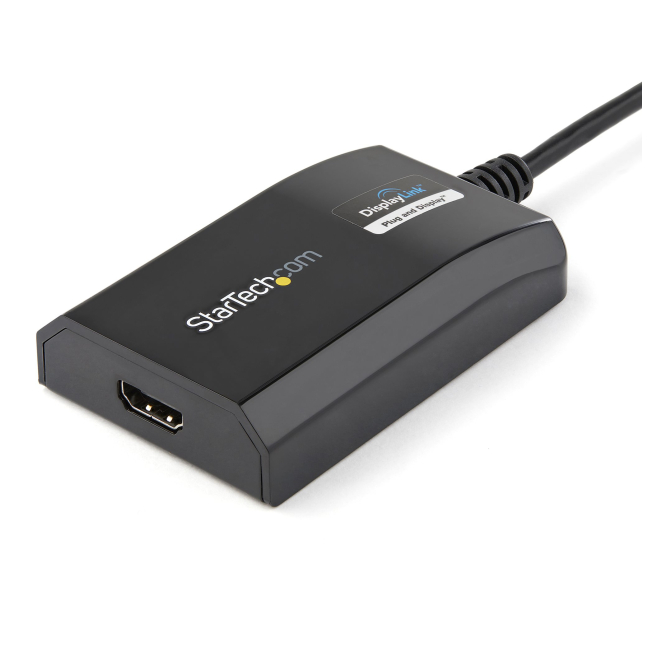 A continuación, respondemos algunas de las preguntas más comunes sobre el StarTech.com Adaptador USB 3.0 HDMI – Certificado con DisplayLink – 1920×1200 para ayudarte a tomar una decisión informada. No, gracias a la certificación DisplayLink Plug-and-Play, los controladores se descargan e instalan automáticamente cuando conectas el adaptador a un ordenador con Windows. Sí, el StarTech.com Adaptador USB 3.0 HDMI es compatible con sistemas Mac, lo que lo hace ideal para usuarios de MacBook y otros dispositivos Apple. Sí, aunque el adaptador es compatible con USB 3.0 para un mejor rendimiento, también es retrocompatible con puertos USB 2.0. El StarTech.com Adaptador USB 3.0 HDMI permite la conexión de una pantalla HDMI adicional a tu ordenador. El adaptador soporta una resolución máxima de 1920×1200, proporcionando imágenes claras y definidas. Color del producto Negro Factor de forma del conector USB Derecho Formatos gráficos soportados 1024 x 768 (XGA), 1152 x 864 (XGA+), 1280 x 1024 (SXGA), 1280 x 720 (HD 720), 1280 x 768 (WXGA), 1280 x 800 (WXGA), 1280 x 960, 1400 x 1050 (SXGA+), 1440 x 900 (WXGA+), 1600 x 1200 (UXGA), 1600 x 900, 1680 x 1050 (WSXGA+), 1920 x 1080 (HD 1080), 1920 x 1200 (WUXGA), 800 x 600 (SVGA) Circuito integrado DisplayLink - DL-3500 Certificados de conformidad RoHS Certificación CE, FCC, DisplayLink Intervalo de temperatura operativa 0-35 °C Intervalo de temperatura de almacenaje 20-80 °C Intervalo de humedad relativa para funcionamiento -5-40 % Ancho 55 mm Profundidad 90 mm Altura 20 mm Peso 62 g Manual de usuario Sí Ancho del paquete 145 mm Profundidad del paquete 212 mm Altura del paquete 40 mm Peso del paquete 196 g