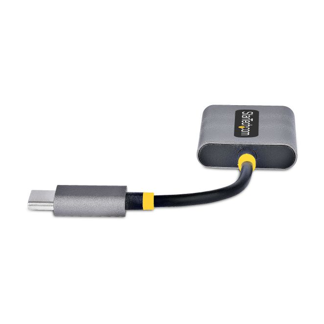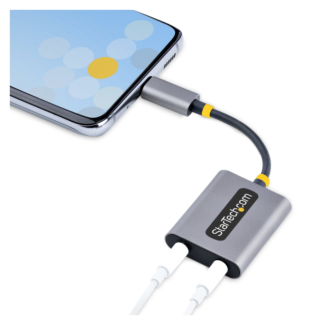 El StarTech.com divisor USB-C de auriculares ofrece una serie de importantes beneficios. Primero, permite conectar dos auriculares o dispositivos de micrófono a un solo puerto USB-C, facilitando las llamadas en equipo y las formaciones. Gracias a su convertidor digital a analógico (DAC) de 24 bits, este adaptador proporciona una calidad de audio sin pérdidas, garantizando una experiencia auditiva inmersiva. Además, su diseño portátil y el cable integrado de 7 cm brindan flexibilidad y comodidad en el uso diario. La compatibilidad universal con auriculares CTIA u OMTP hace que sea adecuado para una amplia gama de dispositivos.