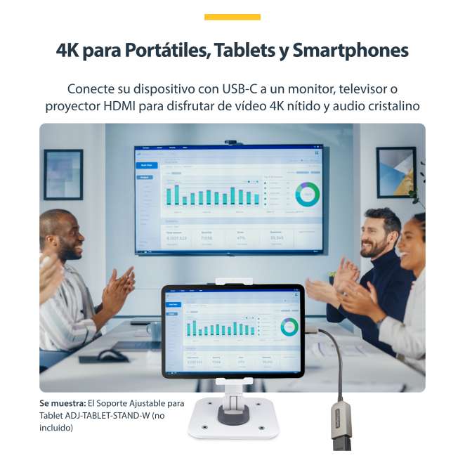 El StarTech.com Adaptador USB C a HDMI de Vídeo 4K 60Hz – HDR10 es ideal para profesionales que necesitan conectar sus laptops o dispositivos móviles a monitores o proyectores de alta resolución. Esto incluye a fotógrafos, videógrafos y cineastas que buscan la mayor calidad de imagen en sus trabajos; así como a expertos en señalización digital que necesitan crear muros de video impresionantes. Es también perfecto para ejecutivos y profesionales que realizan presentaciones y necesitan asegurarse de que los detalles se vean impecables.
