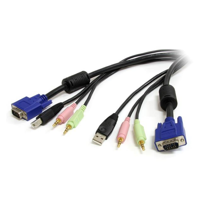 StarTech.com Cable KVM Audio y Vídeo de 1,8m Todo en Uno VGA USB A USB B HD15 Mini Jack Micrófono Altavoces – 4 en 1