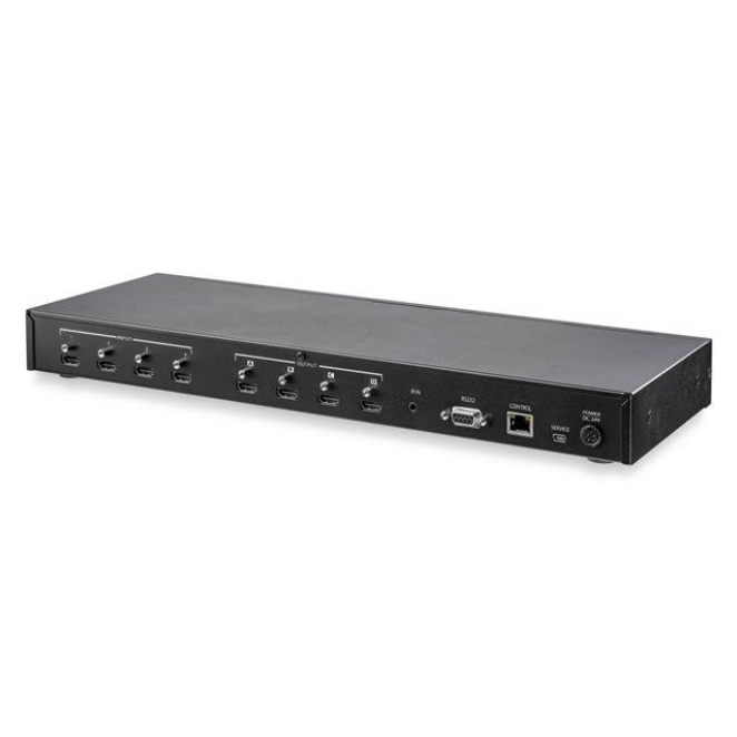StarTech.com Switch Multiplicador de Vídeo HDMI Matriz de 4×4 con Audio y Control por Ethernet – Vídeo de 4K a 60Hz – Divisor HDMI 2.0 de Montaje en Rack con Mando a Distancia