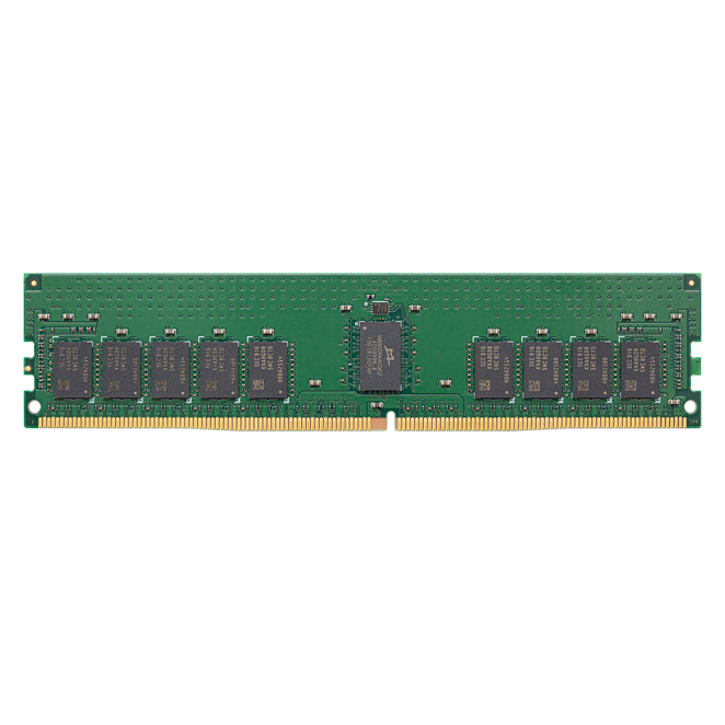 Imagen del módulo de memoria Synology D4RD-2666-16G con especificaciones de 16 GB, 1 x 16 GB, DDR4 ECC. SKU: D4RD-2666-16G.