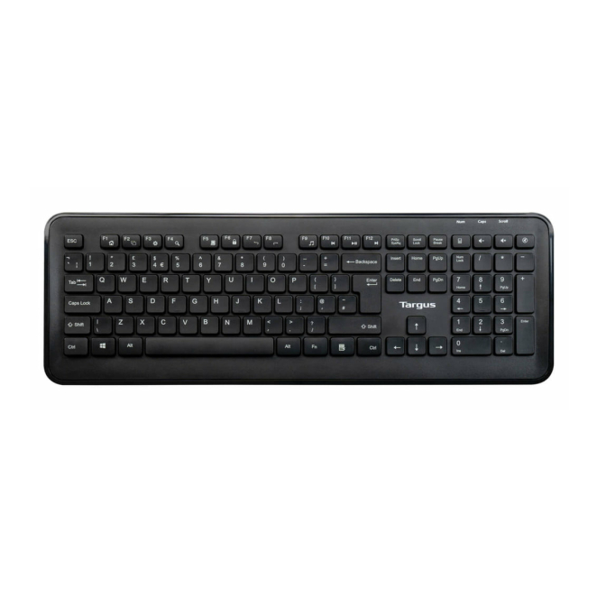 A continuación, algunas de las preguntas más frecuentes sobre el teclado inalámbrico Targus AKM610UK: Sí, el kit teclado ratón Targus tiene una compatibilidad universal, lo que lo hace ideal para usarse con la mayoría de sistemas operativos, incluyendo Windows y Mac OS. El teclado inalámbrico Targus AKM610UK requiere baterías AA para su funcionamiento. Sí, el ratón RF inalámbrico incluido es ambidiestro y está diseñado para ofrecer comodidad durante el uso prolongado. La instalación es muy sencilla gracias a la tecnología Plug and Play. Solo necesitas conectar el receptor USB incluido, y el teclado y ratón estarán listos para usarse. Sí, el teclado universal Targus incluye teclas multimedia para facilitar la gestión de audio y vídeo. Uso recomendado Universal Tecnología de conectividad Inalámbrico Interfaz del dispositivo RF inalámbrico Diseño de teclado QWERTY Idioma del teclado Inglés Dispositivo apuntador No Formato del teclado Completo (100%) Teclado numérico Sí Teclas de Windows Sí Teclas multimedia Sí Frecuencia de banda 2.4 GHz Retroiluminación No Estilo de teclado Derecho Color del producto Negro Conectar y usar (Plug and Play) Sí Alimentación Batería Teclado tipo de batería AA Ratón incluido Sí Factor de forma Ambidextro Tecnología de detección de movimientos Óptico Resolución de movimiento 1600 DPI Cantidad de botones 4 Rueda de desplazamiento Sí Tipo de desplazamiento Rueda Direcciones de desplazamiento Vertical Ratón tipo de batería AA Rueda de desplazamiento Sí Sistema operativo Windows soportado Si Dimensiones de teclado (Ancho x Profundidad x Altura) 570 x 150 x 60 mm Peso del teclado 600 g Interfaz de receptor inalámbrico USB tipo A Número de productos incluidos 2 pieza(s) Receptor incluido Sí Interfaz de receptor inalámbrico USB tipo A