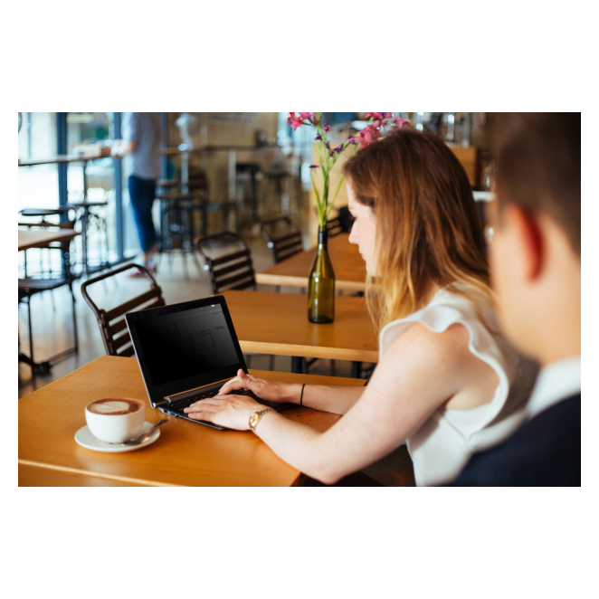 El Targus Privacy Screen se instala fácilmente adhiriéndolo a la pantalla de su portátil. Puede retirarlo y volver a colocarlo según sus necesidades.