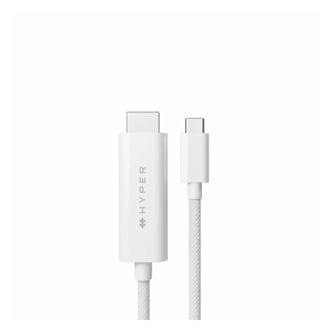 Hyper cable HDMI de 2,5 metros en color blanco con conector USB-C a HDMI tipo A, compatible para transferencia de alta definición. SKU: HD6007WHGL