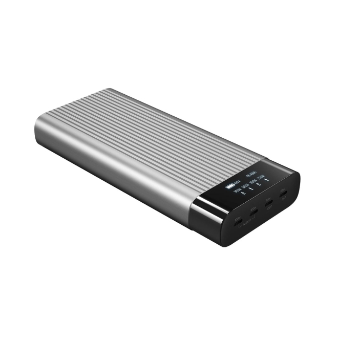 HYPER HJ245B batería externa de 27000 mAh en color plata, ideal para cargas múltiples y dispositivos portátiles.