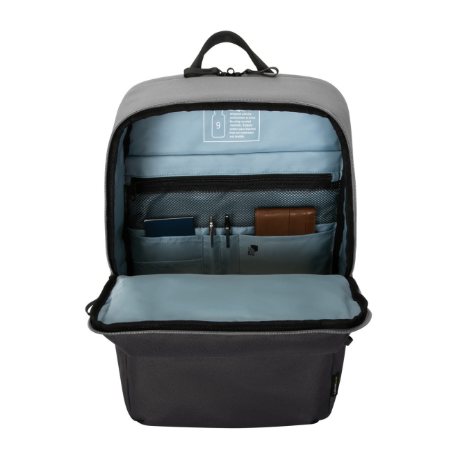 La mochila Targus Sagano está fabricada con RPET 500, un material reciclado de alta calidad que es a la vez duradero y ecológico.