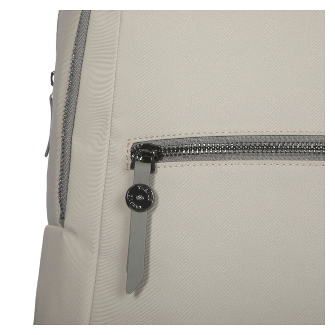 Estilo sofisticado: Detalles en piel vegana y herrajes metálicos hacen de esta mochila una pieza elegante y resistente.