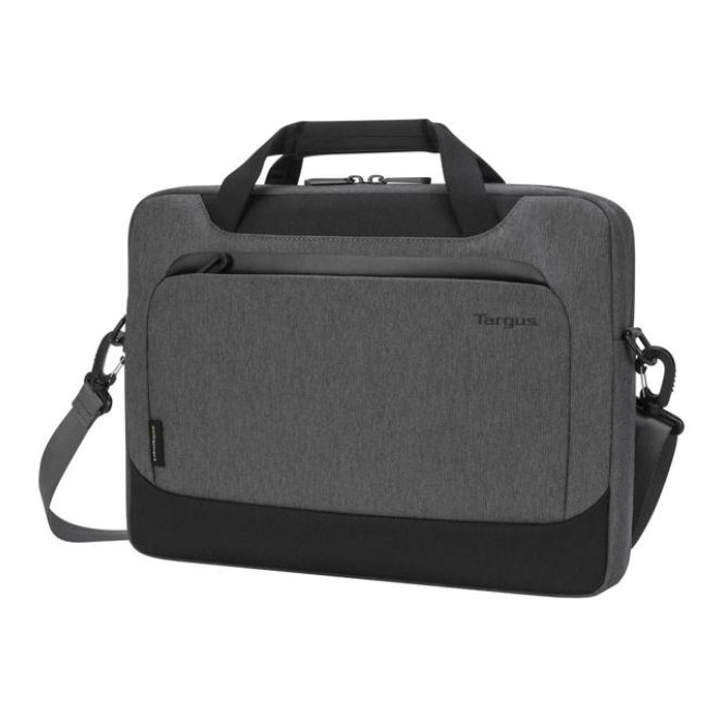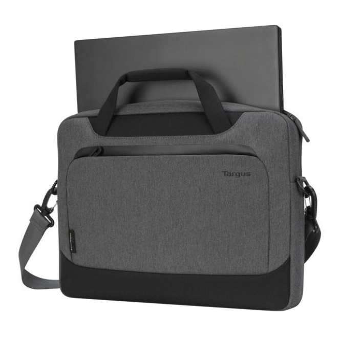 Maletín gris para laptops de hasta 15.6 pulgadas Targus Cypress EcoSmart, hecho con materiales reciclados. SKU: TBS92502GL