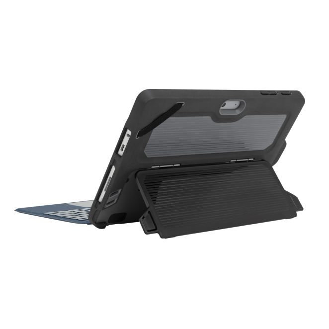 La funda para tablet Targus THZ779GL Folio Negro es una opción ligera y resistente diseñada específicamente para proteger tu Microsoft Surface Go. Con su exterior de policarbonato antimpactos y esquinas reforzadas, esta funda proporciona una excelente protección contra caídas y resbalones accidentales, cumpliendo con los rigurosos estándares militares MIL-STD-810G. Además, su soporte integrado permite ajustar la tablet en diversos ángulos de visualización y escritura, proporcionando versatilidad y comodidad. Los recortes precisos aseguran un acceso completo a todos los puertos y a la cámara sin necesidad de quitar la funda.