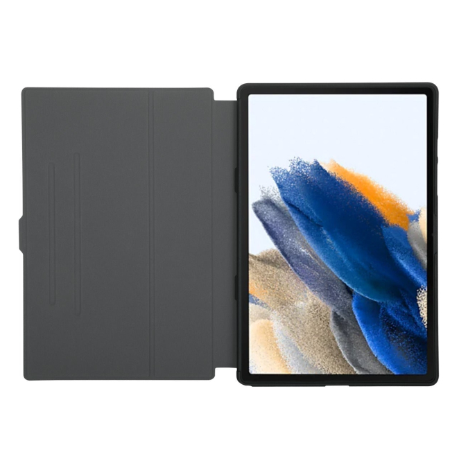 Funda para tablet negra marca Targus de 10.5 pulgadas con soporte ajustable. SKU: THZ919GL Este producto se puede comprar bajo demanda. Financiado desde: 1,86 € /mes Solicita información en caso de necesitar envío urgente. Métodos de pago: Targus THZ919GL funda para tablet 26,7 cm (10.5”) Negro La funda para tablet Targus THZ919GL es el accesorio perfecto para tu Galaxy Tab A8. Esta funda robusta y resistente está diseñada específicamente para proteger dispositivos con un tamaño de pantalla de hasta 10.5 pulgadas. Hecha de termoplástico de poliuretano (TPU), ofrece una combinación excepcional de durabilidad y ligereza que mantiene tu dispositivo seguro sin añadir volumen innecesario. Con la funda para tablet Targus THZ919GL, obtienes protección sin compromisos.