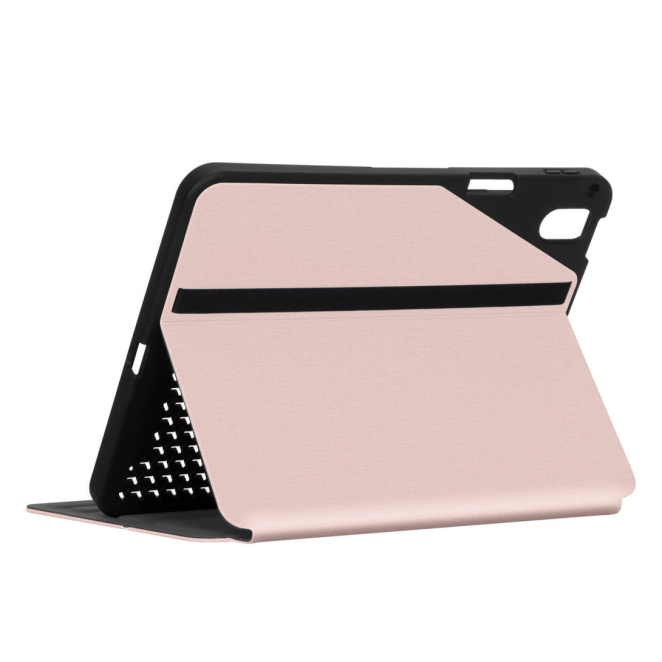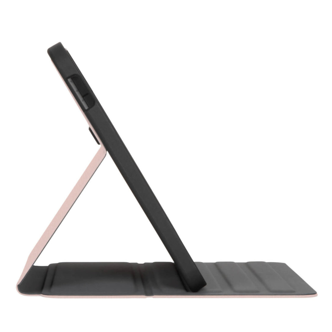 La funda Targus Click-In 27,7 cm (10.9″) Folio Oro rosa ha sido diseñada pensando en la usabilidad y la comodidad. Gracias a sus tres modos de soporte, permite ajustar el ángulo de la pantalla según las necesidades del usuario, ya sea para escribir, ver videos o realizar videollamadas. Además, el elastic band de cierre asegura que el iPad se mantenga seguro en todo momento. El uso de materiales de calidad como el plástico PU y el TPU no solo añade protección, sino que también proporciona una textura agradable al tacto.