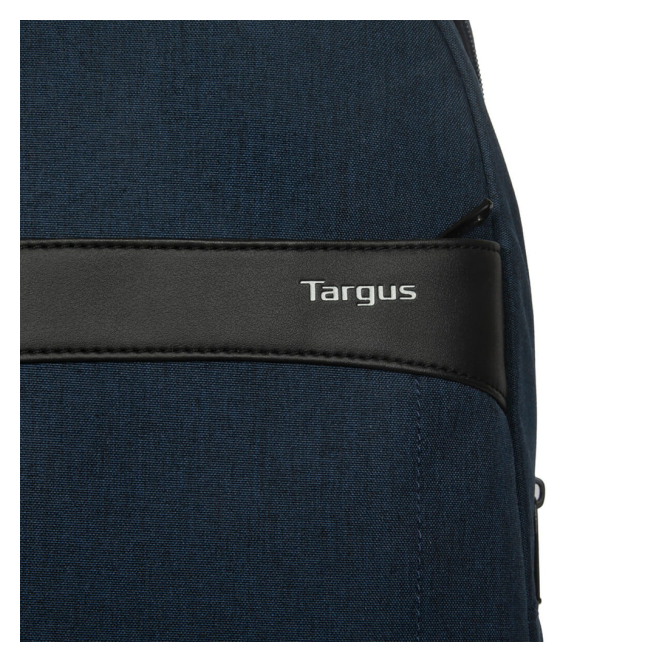 Mochila Targus EcoSmart para viajes, color marina, hecha de materiales reciclados. SKU: TSB96002GL.