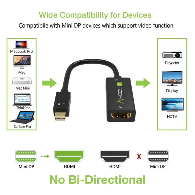 Compatibilidad Universal: Funciona con cualquier dispositivo con salida Mini DisplayPort y pantallas HDMI.