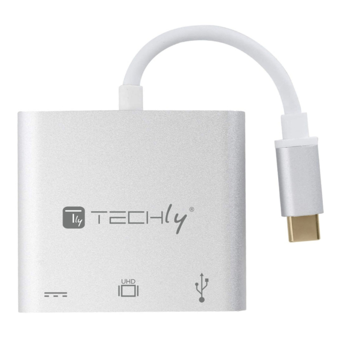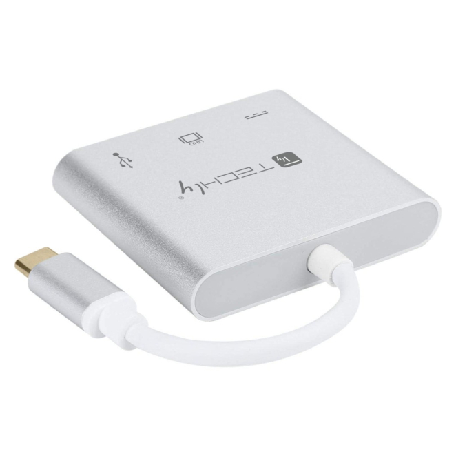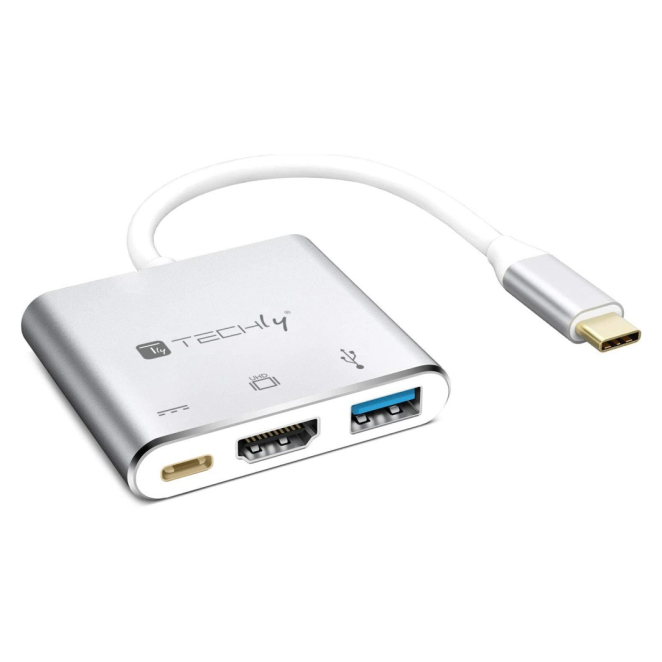 Techly IADAP USB31-HDMIPTY, base para portátil alámbrico con replicador de puertos, USB 3.2 Gen 1 Type-C en color plata