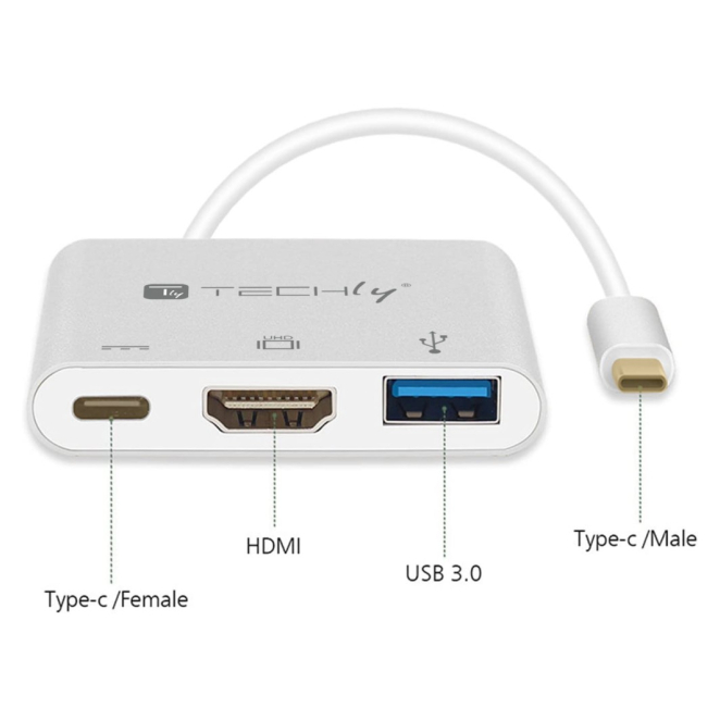 Techly IADAP USB31-HDMIPTY base para portátil y replicador de puertos Alámbrico USB 3.2 Gen 1 (3.1 Gen 1) Type-C Plata