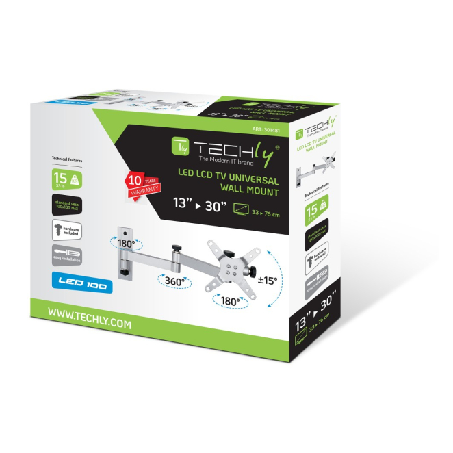 El Techly ICA-LCD 104 ofrece múltiples beneficios que lo hacen destacar en el mercado. Su montaje en pared ahorra espacio y proporciona una solución estética para cualquier sala. Además, su capacidad para soportar televisores de hasta 30 pulgadas y 15 kg asegura una gran versatilidad. El soporte Techly ICA-LCD 104 permite un ángulo de giro de 180° y una inclinación de ±15°, lo que proporciona una experiencia de visualización personalizada. Este soporte para TV es una opción duradera y confiable, ideal para quienes buscan seguridad y elegancia en un solo producto.