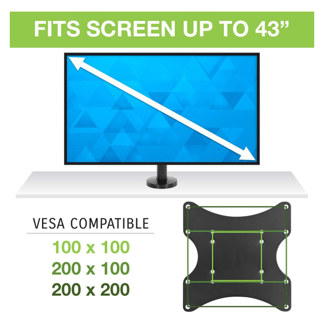 Puede soportar desde monitores pequeños hasta grandes de 43 pulgadas, garantizando versatilidad en su uso.