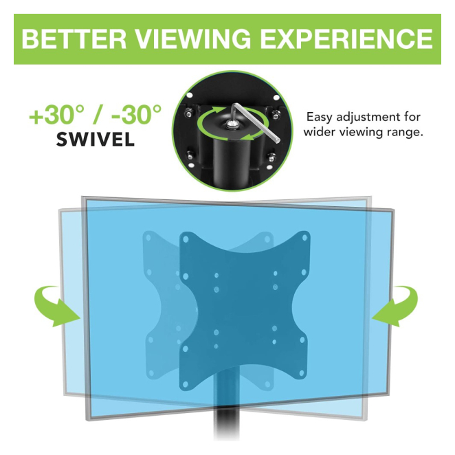 Con un ángulo de giro de -30 a 30 grados, ofrece flexibilidad para una visualización óptima.