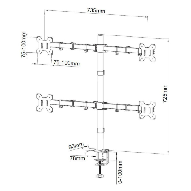 Soporte para monitor Techly ICA-LCD 382-Q de 27 pulgadas Escritorio Negro