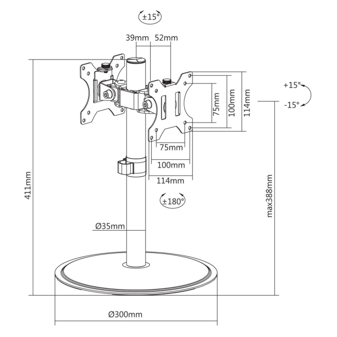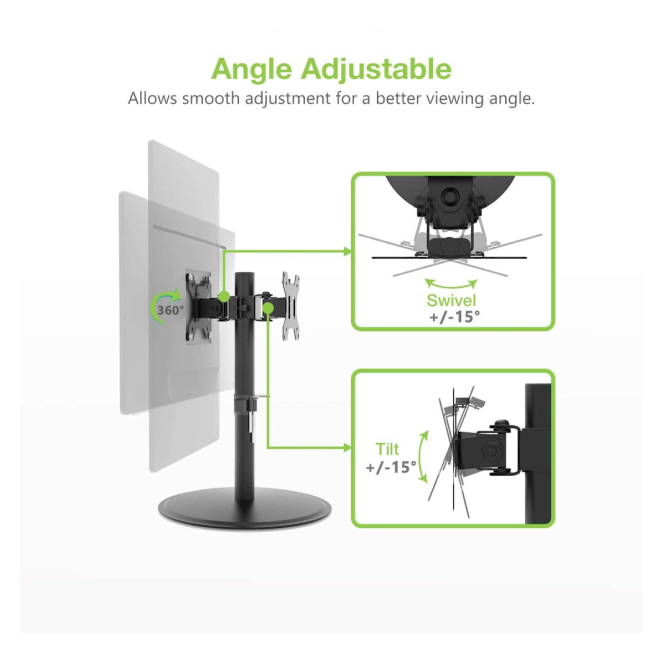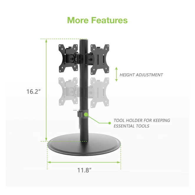 - Soporte Dual: Capaz de sostener dos monitores de hasta 32 pulgadas cada uno.